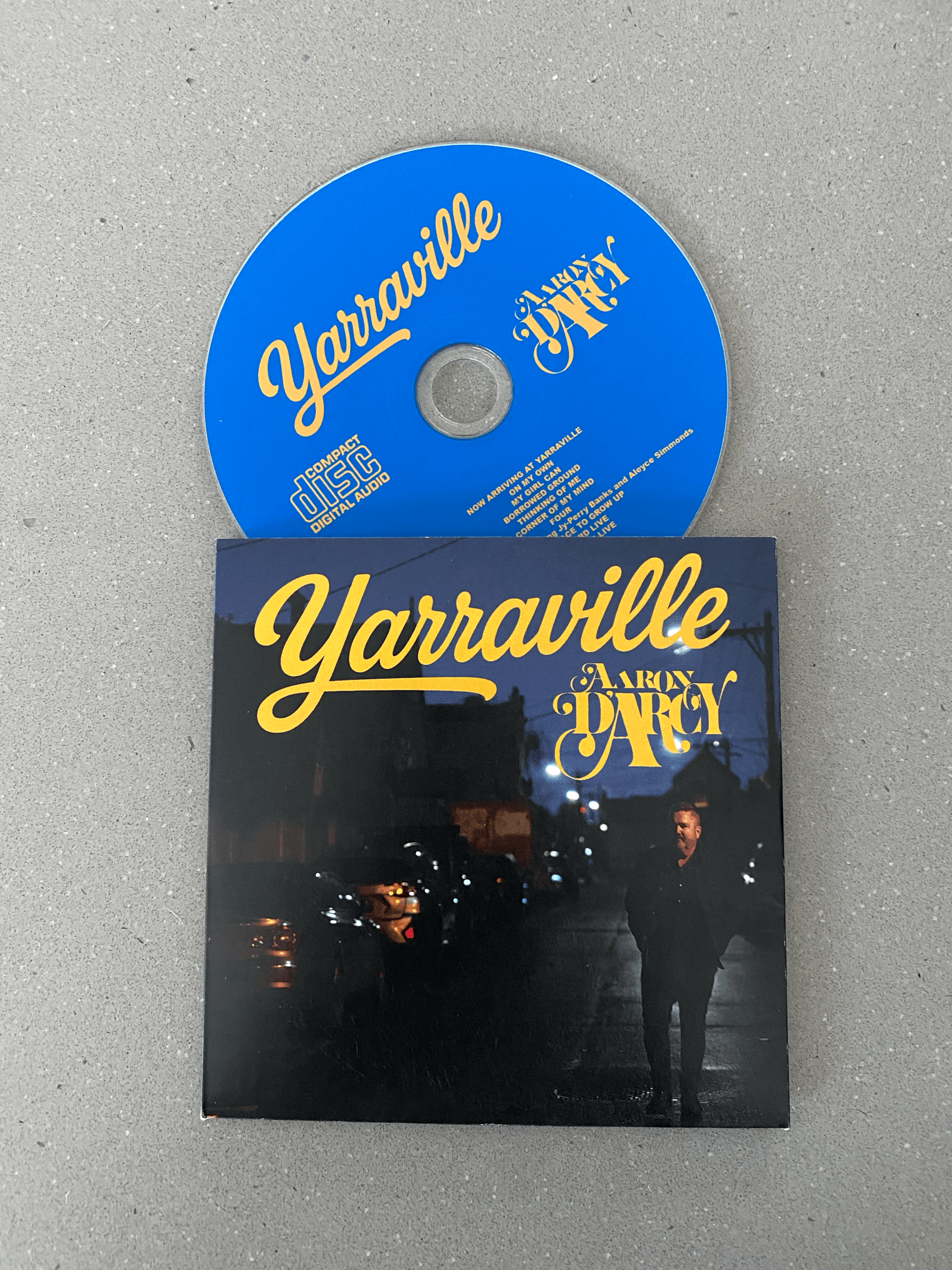 Categories: All Music Merch All | Music | Yarraville Cap A$30.00 YARRAVILLE CD Version Available to buy Now. A$15.00 Yarraville Vinyl Record A$40.00 ON MY OWN 7 INCH SINGLE A$10.00 Charcoal and Ash CD A$15.00 Sold out Moonshine for Breakfast CD A$10.00 Good to See the Girls Again (Radio promo Copy) CD A$10.00 Sold out Aaron D'Arcy Logo Cap PINK or BLUE Sale Price: A$10.00 Original Price: A$25.00 Sale Good to See the Girls again Tee-Shirt A$15.00